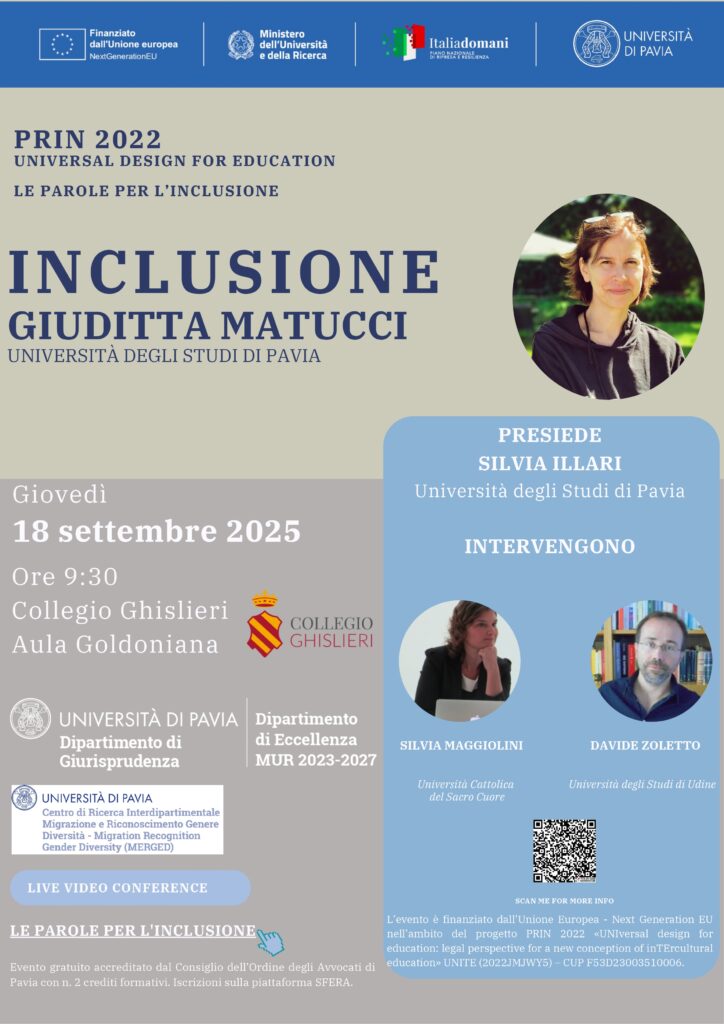 18-19 settembre 2025 – Università degli Studi di Pavia: Universal Design for Education. Prospettive giuridiche per una nuova concezione di educazione interculturale. Convegno finale PRIN 2022 – UNITE.